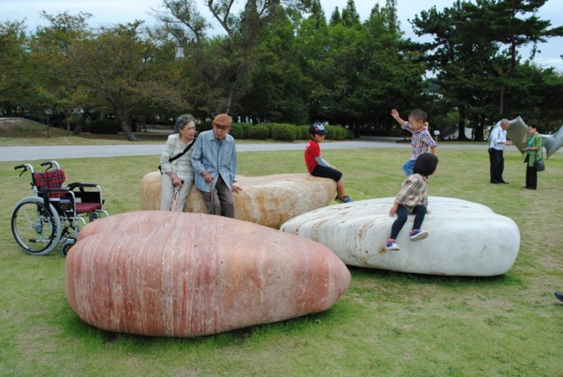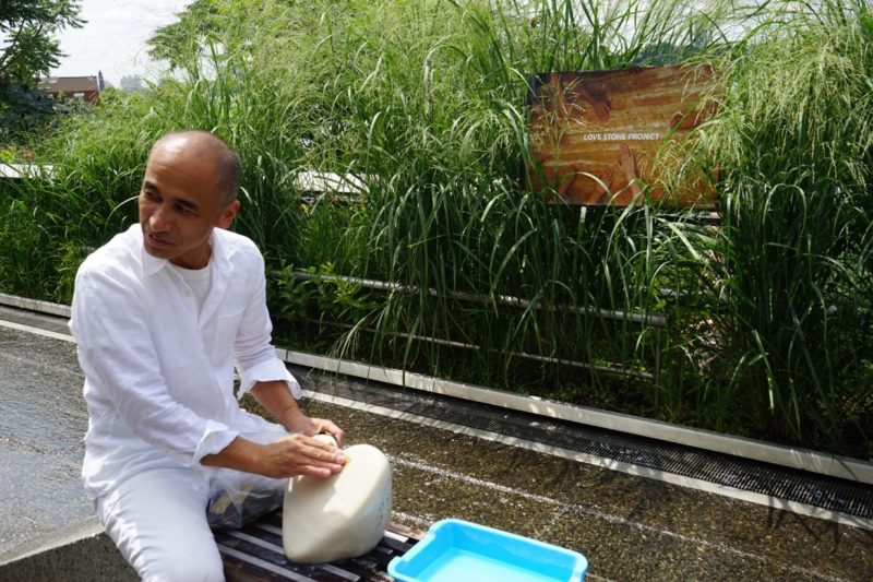2013年には、3つの巨石をハートの形に彫り、市民500人と石を磨いた作品「Our Love」が、第25回UBEビエンナーレ(現代日本彫刻展)で大賞を受賞し、市民参加の「Love Stone Project」が世界各地に広がる、きっかけとなりました。以降、「Love Stone Project」は、アメリカ・メキシコ・イタリア・フランス・スペイン・ベトナム・カンボジア・ブータン・ネパール・エチオピアなど、世界150か所で行われ、およそ2万人が参加しています。