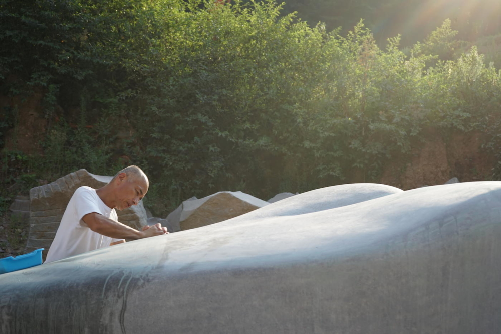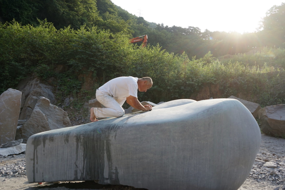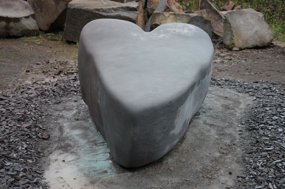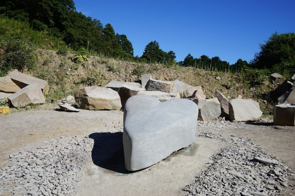 今夏、小松石の石切り場で今までで最も大きなハートを彫りました。彫刻にとって聖地とも言える、特別な場所「MANAZURU」で皆さんとこのハートを磨くことを誇りに感じるとともに、56年前の東京五輪のために同じ石に鑿をあてた先達への恩返しの気持ちで私も磨きたいと思います。