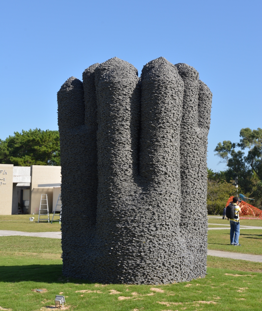 真鶴町・番場浦駐車場にて、公開制作を実施。週末を中心に滞在します。今回、最大重量の小松石を彫刻します。